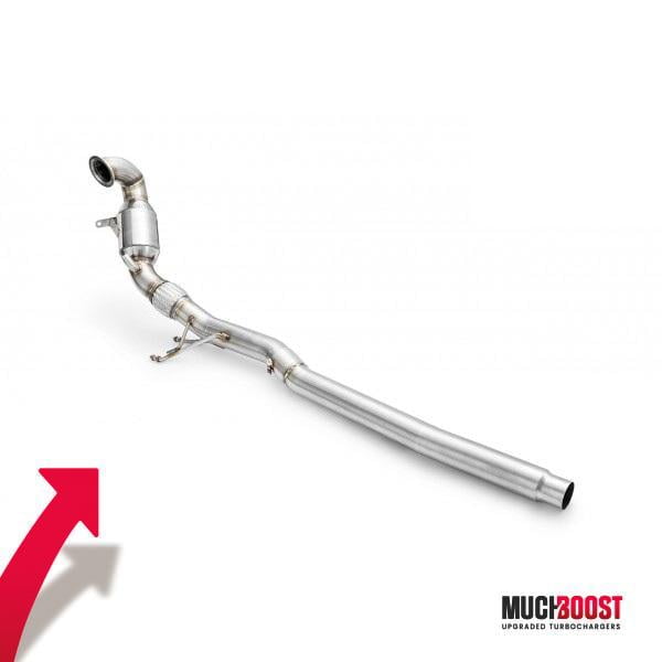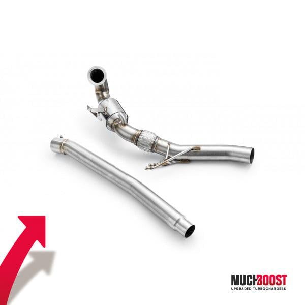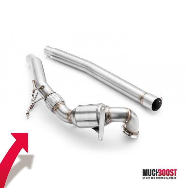 Custom Downpipe Kit for i.a. Volkswagen Golf VII R with 2.0 TFSI engine unit and the stock power of 300hp, Audi S3 8V with 2.0 TFSI  engine, Seat Leon Cupra III ST with 2.0 TFSI, and most of the 2.0 TFSI EA888 GEN3 VW engines.