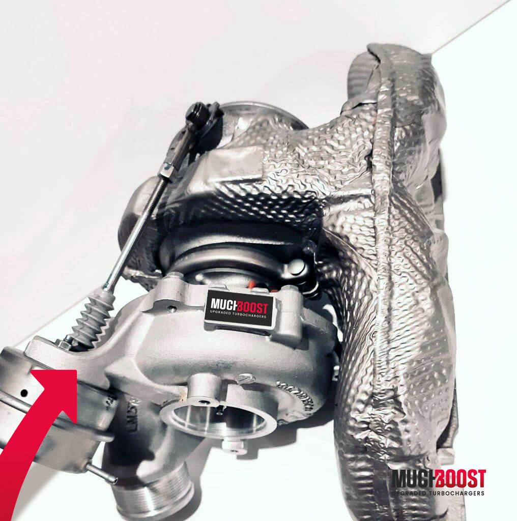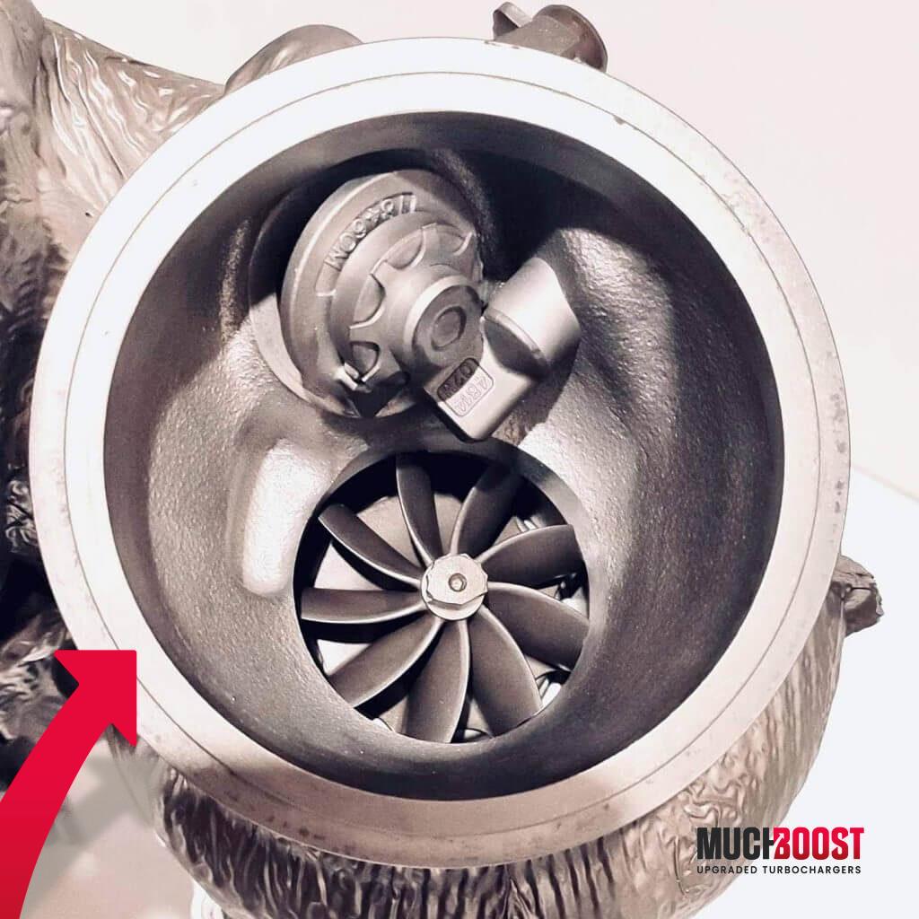 MuchBoost 2.5 TFSI DAZA Upgraded Turbocharger with a Custom Billet Compressor Wheel and an Enlarged High-Flow Turbine Wheel. It is based on an original KKK turbocharger, which means that the installation is 100%P&P. The turbocharger is meant to work with Audi RS3 8V.2, TTRS 8S, and RSQ3 equipped with the 2.5TFSI DAZA / DNWA 400HP engine.