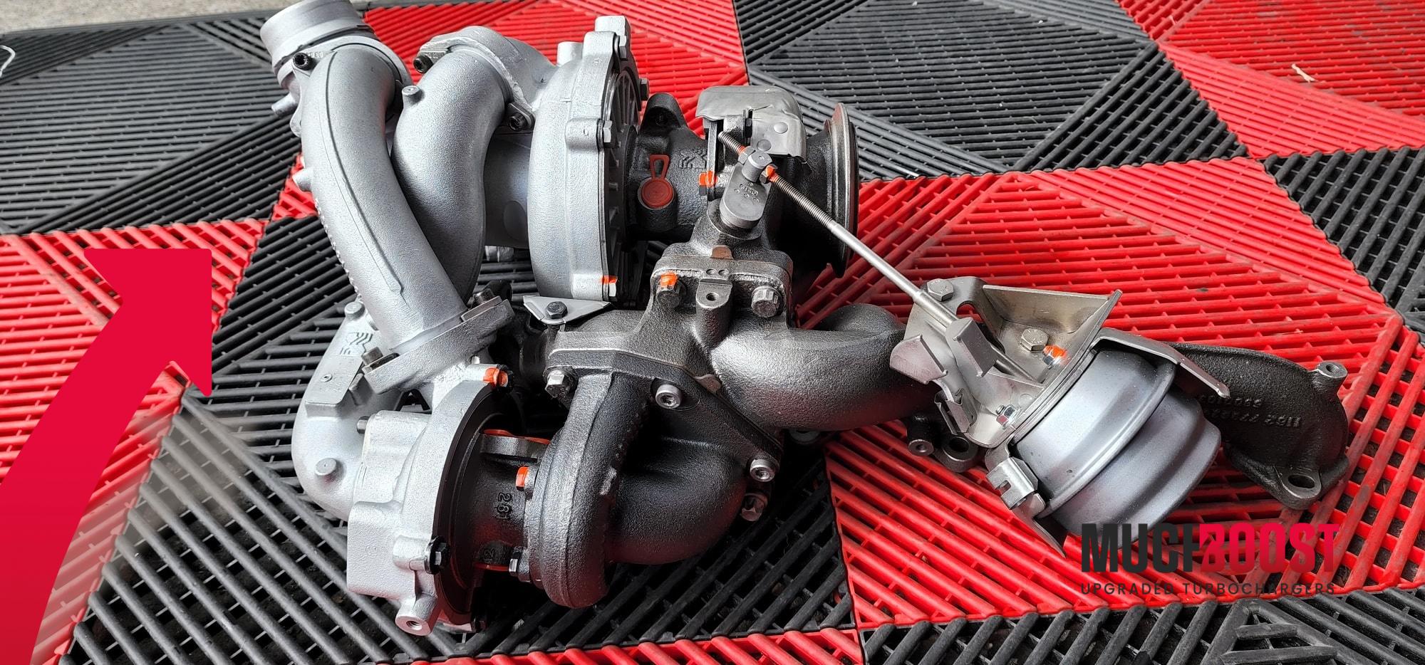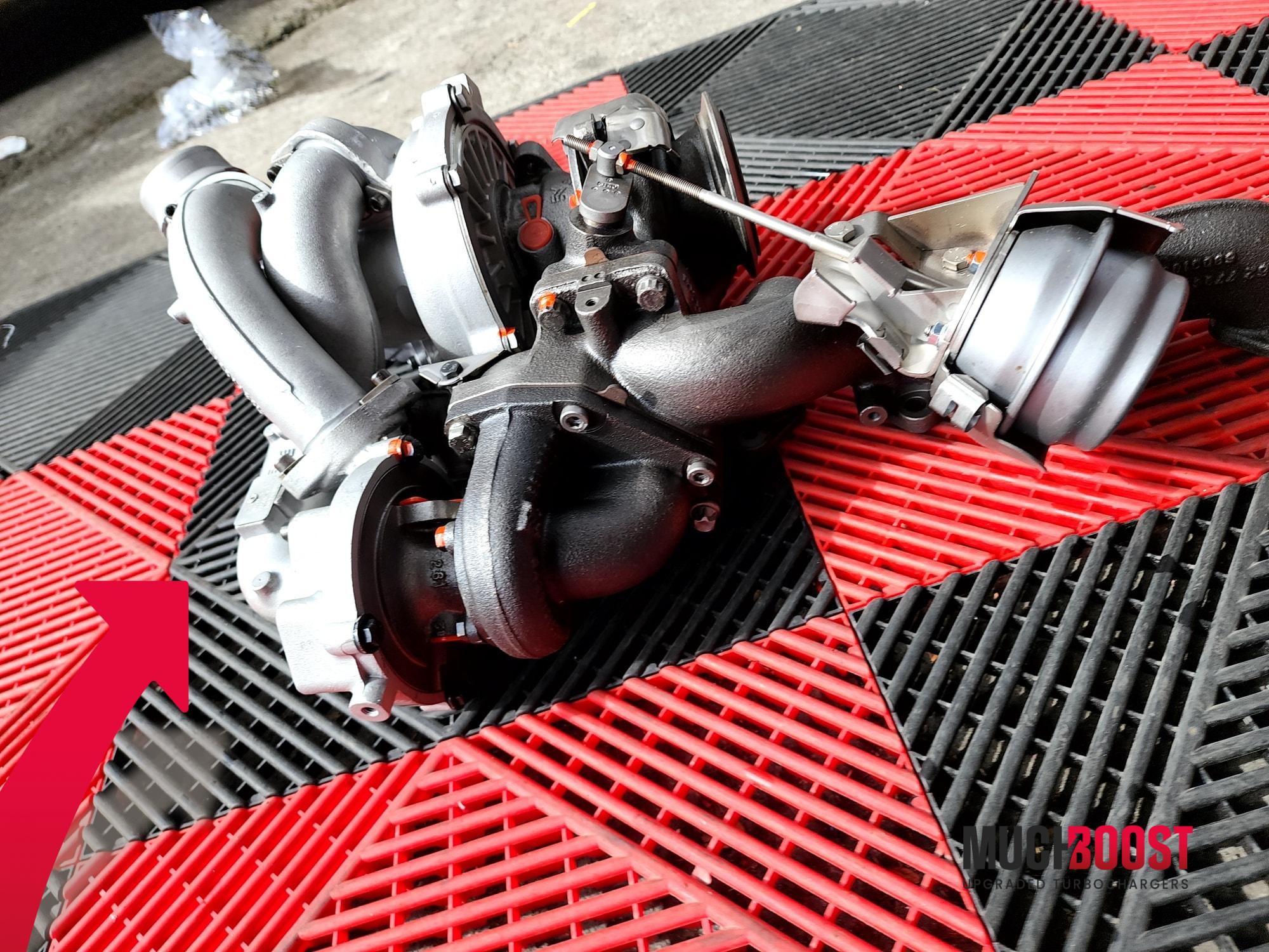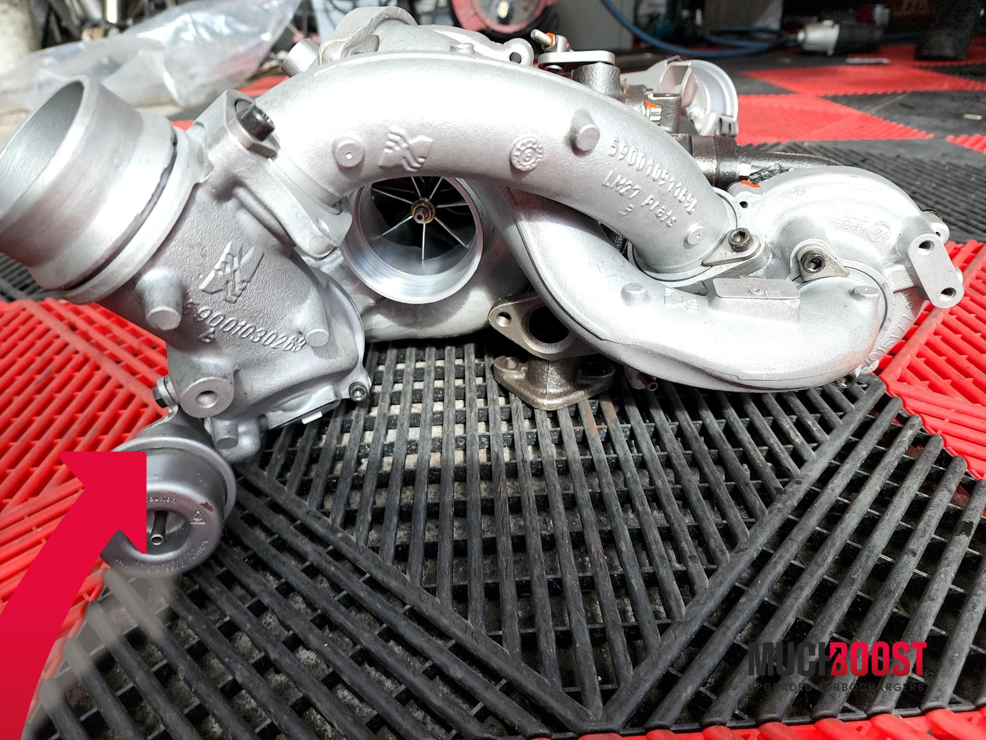 MuchBoost M57D30TÜ2 3.0 Hybrid Upgraded Turbochargers with Custom Billet 7+7/11+0 blades Compressor Wheels and a High Flow 9 blade Turbine Wheel. They are based on original KKK (BorgWarner) turbochargers, which means that the installation is 100% P&P. The turbocharger set is meant to work with BWM 335d E90/E91/E92, 535d E60/E61, 635d E63/E64, X3 E83, X5 E70, X6 E71, and others equipped with the 3.0 M57D30TÜ2 286HP engine.