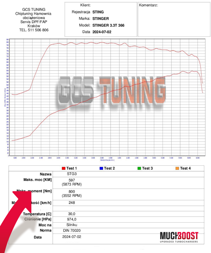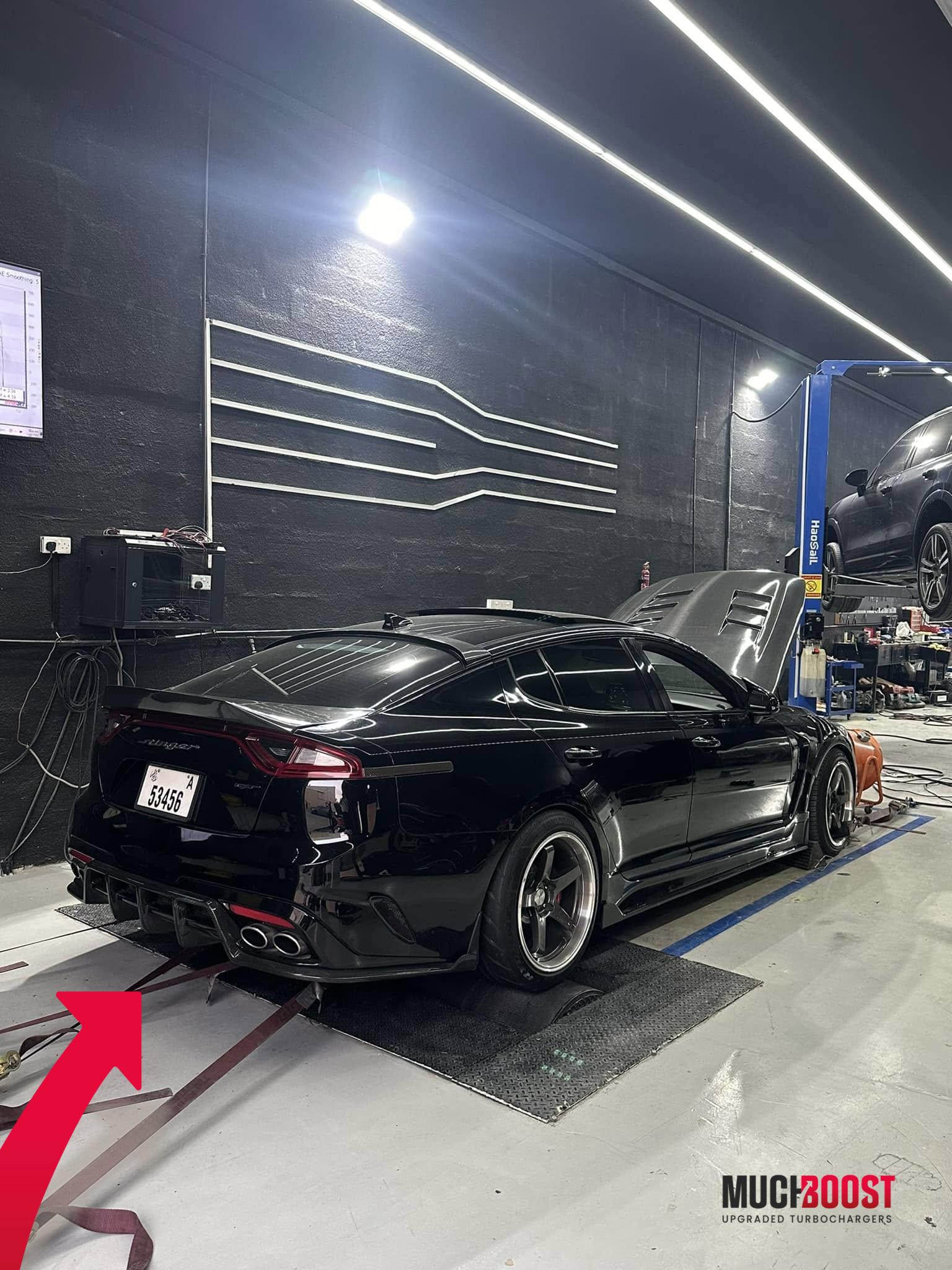 Another great project based on the Kia Stinger 3.3 T-GDi managed to produce 530HP and 614Nm of torque with our turbochargers. The car was also equipped with: