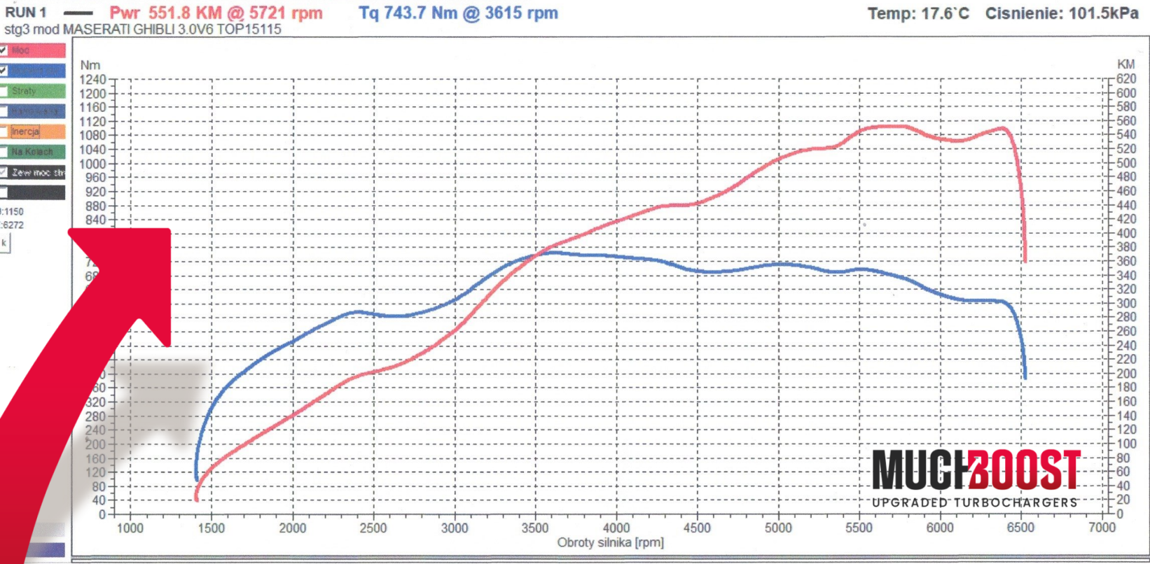 One of our clients, with the 560 HP option, produced 551 HP and 743 Nm of torque. The car was also equipped with: