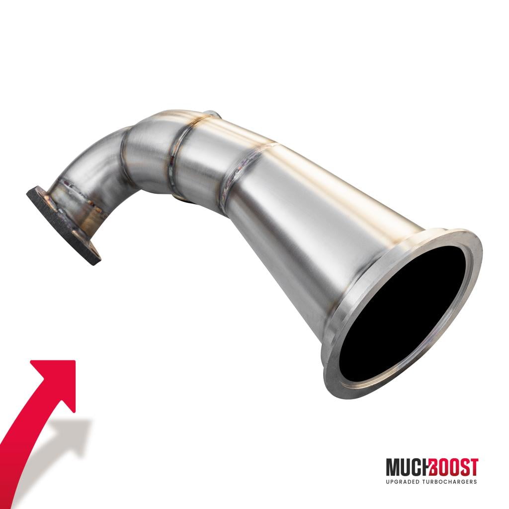 This downpipe is made using CNC technology and is fully made ut of Acid-Resistant Steel. The Catalytic Converter (CAT) is either completely removed or a high-flow one is fitted in its place, which helps with reducing back pressure. This directly improves the turbo spool time, increases power, and provides a more aggressive exhaust note.  Both the diameter and the size of the downpipe have been specially designed to remove exhaust gases as fast as possible while providing the best performance. The DE-CAT version may be illegal for road use in your country/state. Please check the rules beforehand. The DP is manufactured in a way that provides the best flow with the least variances in its cross-section. It connects the turbocharger with the rest of the exhaust system and sometimes is vital for ensuring that your turbo potential doesn’t go to waste. It is a great option to pair with a hybrid turbo.