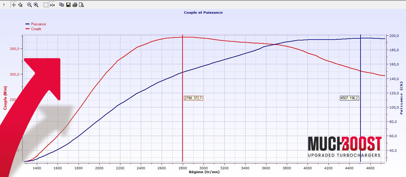 One of our clients managed to produce 197HP and 374Nm of torque. The car was also equipped with a 63mm downpipe. Please take a look at the dyno graph below.